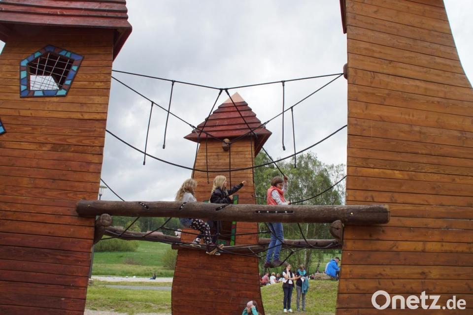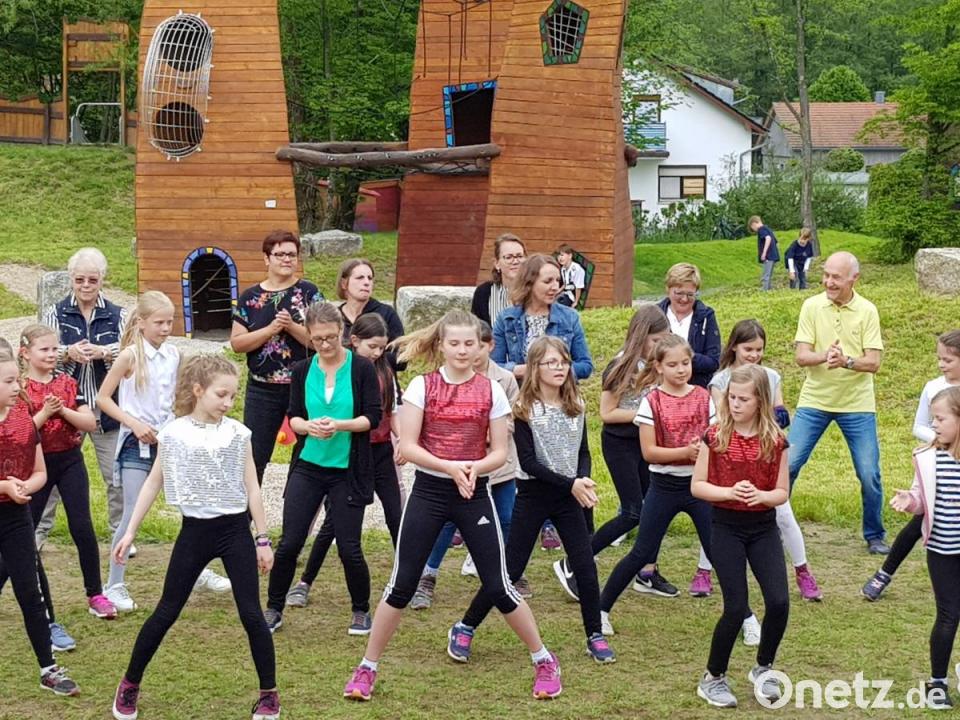 Mit Wasser an der Mühle pantschen, die Türme mit Kletternetz besteigen, im Vogelnest schaukeln oder an den "Jungformatoren" Spaß haben – für Jung und Alt bot die Freizeitanlage mit Spielplatz und Moorbad beim Aktionstag des Landkreises Abwechslung und Unterhaltung. Da passten die Auftritte der Kindertanzgruppe aus Weiding unter Leitung von Helga Spörl ins Programm, vor allem als die Mädchen auch Gäste zum Mittanzen animierten. Diese ließen sich nicht lange bitten und reihten sich gerne bei den jungen Tänzerinnen ein.