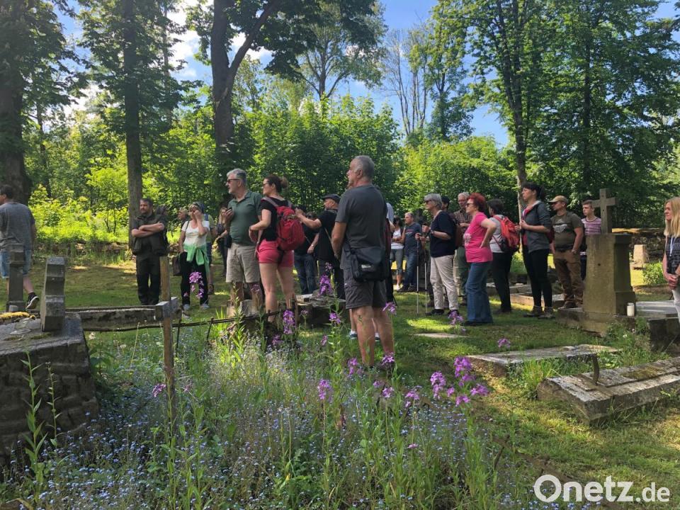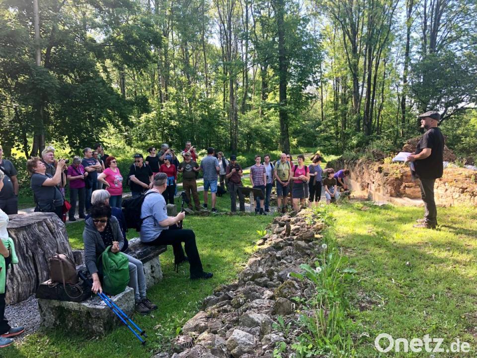 Nach der ausführlichen Erkundung im ehemaligen Grafenried ging die Exkursion weiter zu früher von Wasserrädern betriebenen Mühlen, Glashütten und Sägen in den untergegangenen Ortschaften Pila (Seeg), Liskovec (Haselberg) und Křížová Hut (Kreuzhütte). Beim näheren Blick auf eine Abraumhalte im ehemaligen Haselberg fanden einige der Spurensucher blaugrün glänzende Glasperlen und gläserne Bruchstücke aus einer ehemaligen Glashütte. Aufmerksam verfolgten die Wanderer die Erläuterungen von Tomáš Peckert, der auf die besondere Vegetation mit Pionierpflanzen und ausgewilderten Gartenpflanzen in den untergegangenen Orten hinwies, andererseits aber Grün zeigte, das durch die Zäsur in der Landnutzung nach dem 2. Weltkrieg erhalten blieb. In den besiedelten Gebieten andernorts sind sie längst verschwunden.