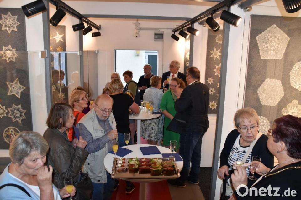Als Bürgermeister Reinhard Kreuzer zusammen mit seinem Stellvertreter Andreas Hopfner und der städtischen Organisatorin Sandra Klein die Ausstellung offiziell mit Sekt und Häppchen eröffnete, fanden die Besucher kaum Platz im Trafo. Die Nischen ermöglichten es den Gästen aber, sich doch noch über all die Spitzenkunst auszutauschen.
