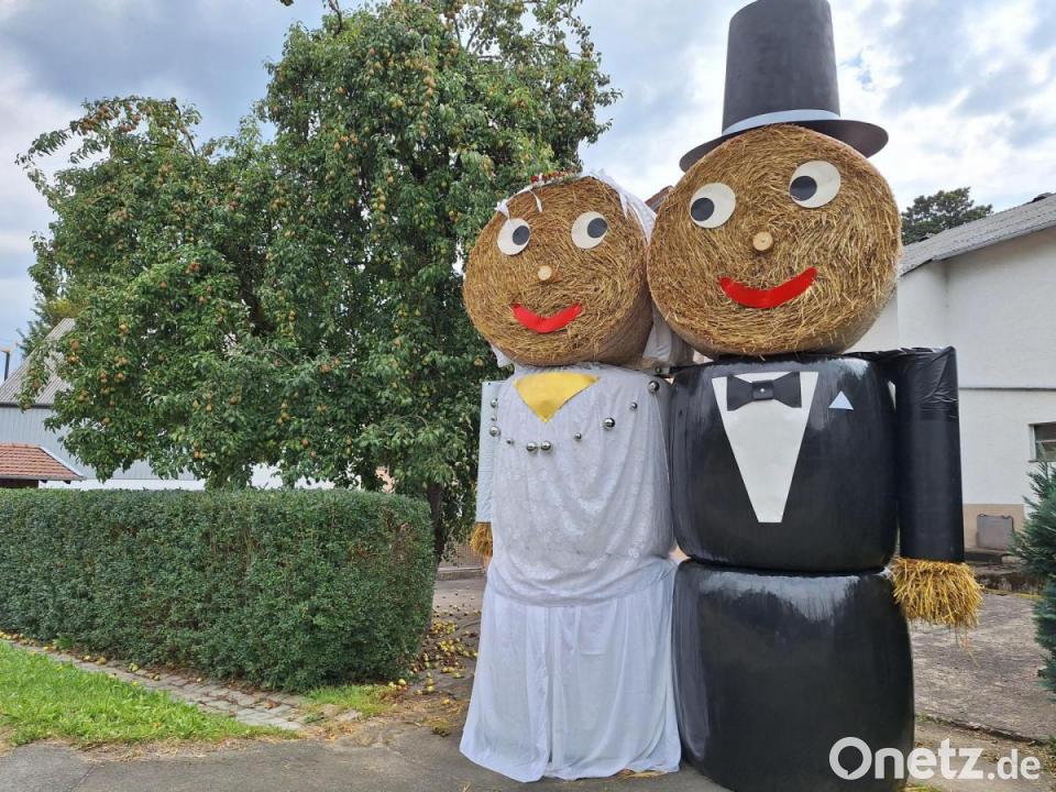 Kokett schielt die Braut in Richtung Bräutigam, und auch er kann wohl seine Augen nicht von ihr lassen. Als Paar sind die beiden überdimensionalen Strohpuppen an der Hauptstraße in Schönsee keinesfalls zu übersehen. Es ist anzunehmen, dass sie für zwei Menschen aus Fleisch und Blut stehen. Freunde oder Verwandte haben das Ja-Wort der beiden nun ziemlich publik gemacht und sich bei der Darstellung viel Mühe gegeben.