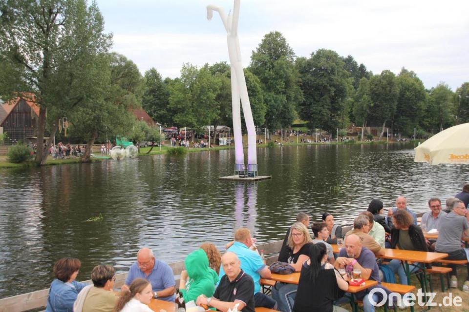 Das Speisenangebot konnte sich sehen lassen, ebenso die vielfältigen Verkaufsangebote bei den Fieranten, Schautellern und „Flohmarktlern“. Am frühen Abend war das große Areal rund um den See und bis hinter zum Feuerwehrgerätehaus und zum Wasserrad mit etwa 10 000 Gästen – inklusive der Kinder, die keinen Eintritt zahlen mussten – gut gefüllt. Acht Musikbühnen luden zum Zuhören und zum Tanzen ein. Ob die Blaskapelle Stadlern, die „Werkstatt- Musikanten“, die „Urwaidler“, die Partyband „Mad Companie“, „Sedmihorka“ aus Tschechien, „Rockimpact“, die Blaskapelle Dietersdorf oder die Open-Air-Disco am Wasserrad: Die Wünsche der musikbegeisterten Gäste wurden gerne erfüllt. Zum Finale gab es dann das große Feuerwerk. „Europe The Final Count Down“ und das „Friedenslied“ von Michael Jackson, „Heal The World“, waren mit Blick auf den Ukrainekrieg zu hören. Beeindruckende Momente beim Seefest-Finale.
