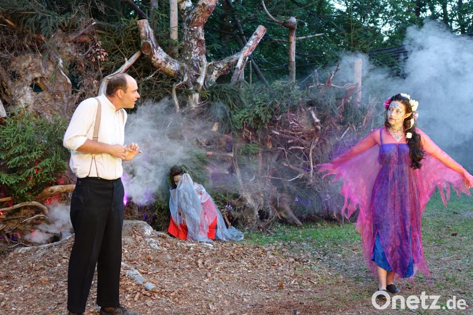 Der dunkle Wald ist in malerisches Licht getaucht ist, eine feine Melodie erklingt: Geheimnisvoll wird es auf der Bühne am Bergweberhaus, wenn die Figuren der Zwischenwelt dort erscheinen und Seppi mit ihnen Kontakt aufnimmt. Die Elfe Lea (Julia Veitenhansl) ist von dem Mensch so angetan, dass sie ihm verbotenerweise ihren Namen verrät. "Das hätte sie niemals tun dürfen", rufen die Wichtel außer sich. Den Waldwesen bleibt Leas Vergehen nicht verborgen, Schrat (Stephan Reiminger) ruft sein Volk zum Gericht. Zusammen mit den vier Elementen Wasser (Judith Höcherl), Feuer (Stefan Pabinger), Erde (Celina Ehrenthaler) und Luft (Magdalena Höcherl) wird Lea aus dem Wald verbannt.