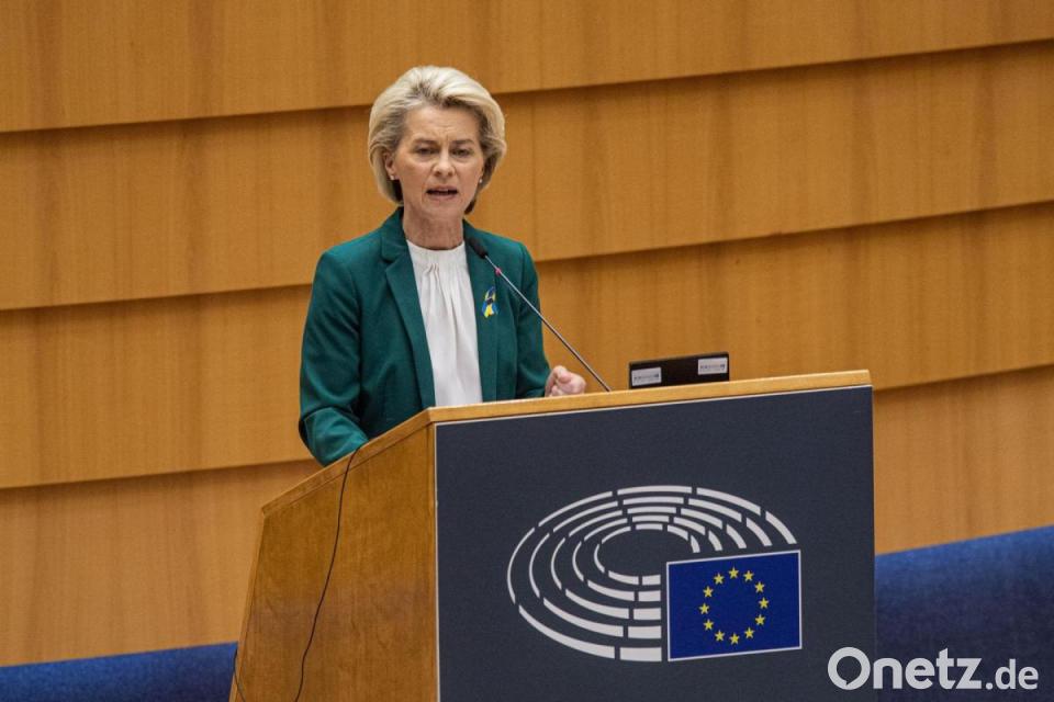 „Wenn Putin versucht hat, die EU zu spalten, die Nato zu schwächen und die internationale Gemeinschaft zu zerschlagen, so hat er genau das Gegenteil erreicht“, sagte von der Leyen am Dienstag. „Wir sind geeinter denn je.“ Ehrengast war der ukrainische Präsident Wolodymyr Selenskyj, der für seinen emotionalen Appell per Live-Video stehende Ovationen erhielt. Erneut forderte er den EU-Beitritt seines Landes.