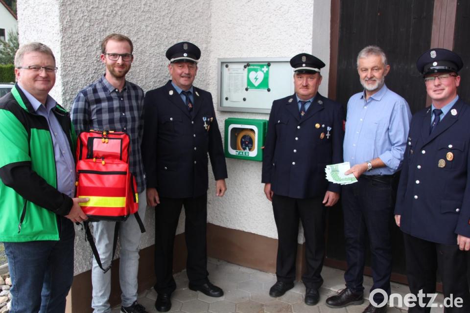 Die Feuerwehr Schurbach hat einen Defibrillator gekauft, der vor dem Eingangstor zum Gerätehaus angebracht wurde. Das Granitwerk Ludwig Popp ließ sich nicht lumpen: Geschäftsführer Gerhard Kuchenreuther und Junior-Chef Johannes Kuchenreuther übergaben dafür eine Spende in Höhe von 1000 Euro an die Schurbacher Wehr, die Kommandant Albert Popp, sein Stellvertreter Heribert Hecht und Kassierer Alexander Hecht in Empfang nahmen. Nach der Spendenübergabe lud Krisch die Aktiven zu einem Übungsabend mit dem Defibrillator ein.
