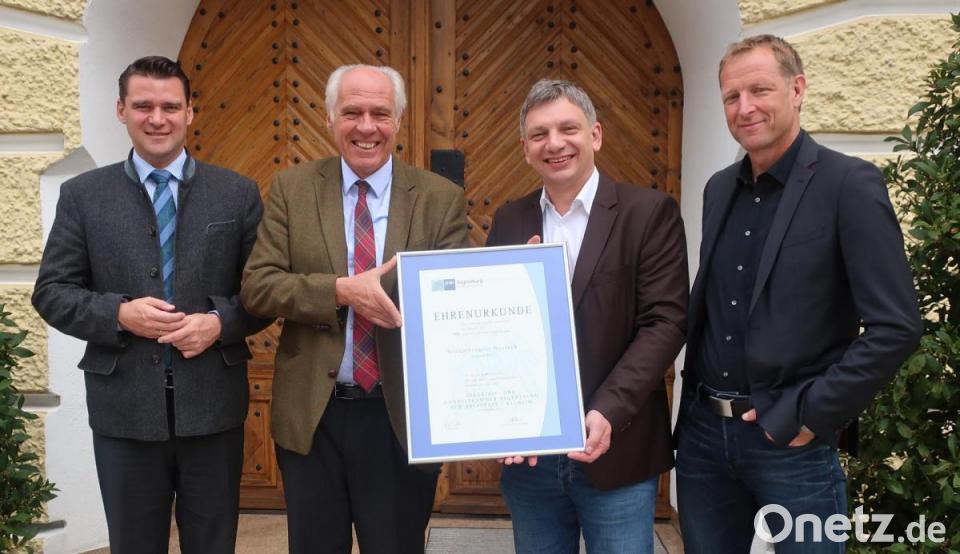 IHK-Geschäftsstellenleiter Manuel Lischka nahm das "Hundertjährige" der Brauerei zum Anlass, dem derzeitigen Inhaber Wolfgang Rasel eine Urkunde der Industrie- und Handelskammer zu überreichen. Landrat Thomas Ebeling und Wirtschaftsförderer Christian Meyer informierten sich bei dieser Gelegenheit über die aktuelle Situation des Unternehmens.