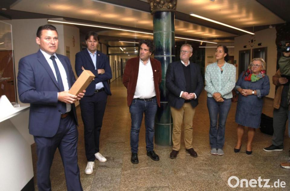 Am Samstagvormittag erwarteten Landrat Thomas Ebeling und Oberbürgermeister Andreas Feller die Gäste im Landratsamt. In fließendem Französisch begrüßte Ebeling die Delegation der Schwandorfer Partnerstadt. Er führte die Gäste durch das Haus, in dem 500 Mitarbeiter beschäftigt sind. Zur französischen Delegation gehörten Libournes Bürgermeister Philippe Buisson, Sous-Prefet (Landrat) Matthieu Doligez und die beiden Stadträte Gabi Höper und Pierre Prunis. Sie sind die einzigen „deutschsprachigen Ausländer“ im Libourner Stadtparlament.