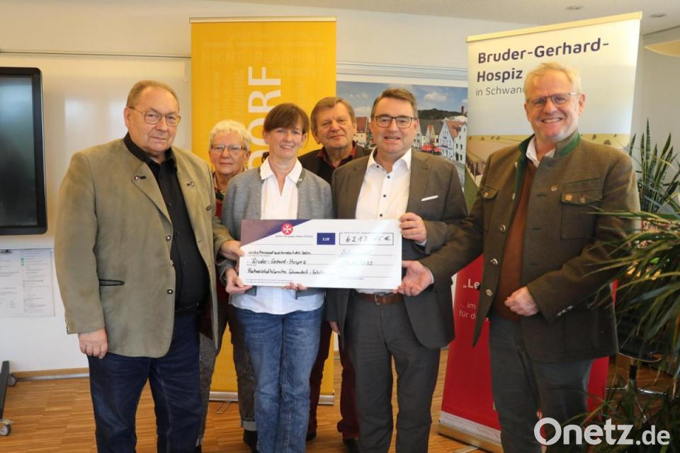 Im Beisein von Oberbürgermeister Andreas Feller, Johanniter-Regionalvorstand Martin Steinkirchner, dem Hospizverein Schwandorf und Johanniter-Sachgebietsleitung Sabine Sudler übergaben die Vertreter des Partnerschaftskomitees den Spendenscheck. Martin Steinkirchner und Sabine Sudler bedankten sich für die Spende.