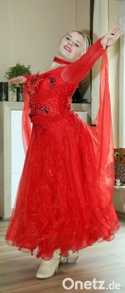 „Irgendwann hat man das alles im Kopf. Anfangs ist es schwer, sich das zu merken, aber es sind auch viele Basics dabei.“ Eine Art Kleiderordnung verlangt für den Walzer ein langes Kleid zum Beispiel, keine nabelfreie oder bauchfreie Bekleidung, Träger mindestens einen Zentimeter breit. Da werden dann von Oma oder Mama, die Spaghettiträger mit aufgenähten Blumen oder Samtbändern verbreitert. Das Tanzoutfit kommt aus Shanghai, der Kosten wegen. Rebeccas Familie investiert einiges in den Sport. Als die Schülerin im Oktober Deutsche Meisterin Newcomer wurde waren zwei Wettbewerbstage im thüringischen Meiningen angesetzt. Die Fans aus der Familie kamen natürlich mit.