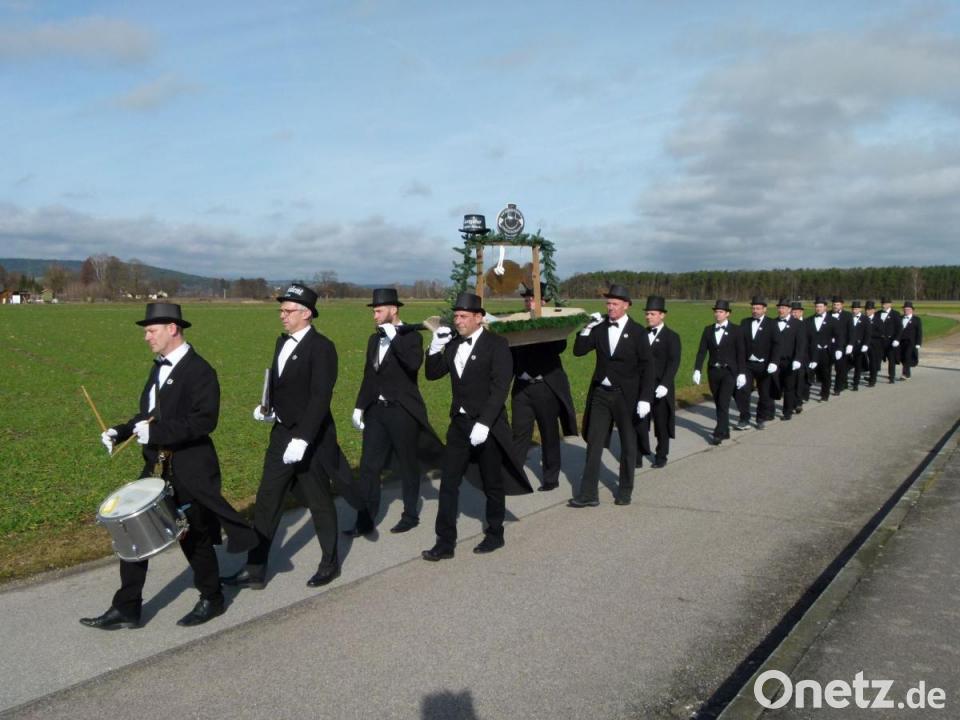 Die Aschermittwoch-Gesellschaft war traditionsbewusst mit Frack und Zylinder unterwegs, um den Fasching in Klardorf zu beenden. Die Gesellschaft wächst von Jahr zu Jahr und feierte heuer zusätzlich ihr zehnjähriges Bestehen. Ausgangspunkt war das Sportheim in Klardorf. Mit ernsten Mienen und stillschweigend setzte sich der Fischzug nach dem Kommando des Präsidenten Georg Wein in Marsch. Der Zug führte quer durch Klardorf zum Turm-Restaurant. Kein Lächeln und kein Ton kam der 19-köpfigen Gesellschaft über die Lippen. Mit diesem Ritual will die Vereinigung die Beerdigung der „Fünften Jahreszeit“ zum Ausdruck bringen. Beim Gasthaus Obermeier fand dann die Trauerrede des Präsidenten, das Waschen der Geldbeutel und ein gemütliches Beisammensein statt.