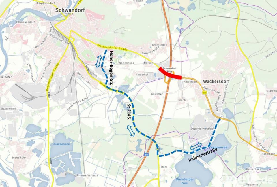 Wenn die Arbeiten in Heselbach abgeschlossen sind, startet wenige Kilometer weiter die nächste Baustelle. Ab Montag, 15. November, ist die Autobahn-Anschlussstelle Schwandorf-Mitte nahezu vollständig gesperrt. Derzeit geht das Bauamt von einer Dauer bis Samstag, 27. November aus. Einzig die Ausfahrt von Weiden kommend in Richtung Schwandorf-Mitte wird durchgängig passierbar sein. Grund für die Sperrung ist die Sanierung der Fahrbahnen auf den Rampen der Anschlussstelle. Der Verkehr auf der Autobahn wird bereits an den Anschlussstellen Schwandorf-Nord und Schwandorf-Süd ausgeleitet. Von Norden kommend wird der Verkehr über die Kreisstraße SAD 9 und von Süden über die Kreisstraße SAD 2, die Staatsstraße 2145 und die Industriestraße zur B 85 umgeleitet. Der Verkehr auf der Bundesstraße 85 von und in Richtung Schwandorf soll in der Übergangszeit den Umweg über die Staatsstraße 2145 und die „Hoher-Bogen-Straße“ nehmen.