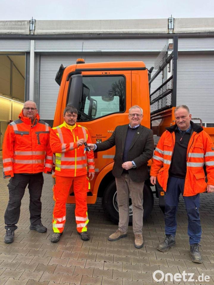Der Städtische Bauhof Schwandorf hat seinen Fuhrpark um einen neuen 12-Tonner der Marke MAN erweitert. Das teilt die Stadt Schwandorf mit. Das Fahrzeug, ausgestattet mit einem 250-PS-Motor und Euro-6-Abgasnorm, wurde am Dienstag von Oberbürgermeister Andreas Feller übergeben. Anwesend waren auch Werkstattleiter Bernhard Boßle, der stellvertretende Bauhof-Leiter Jürgen Liebl und Kraftfahrer Christian Dirnberger.