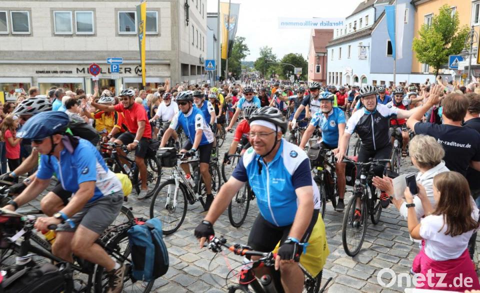 Die Strecke am Mittwoch war für die 1100 Teilnehmer an der BR-Radltour nicht so einfach. Nicht etwa wegen des Höhenzugs, der zu bewältigen war, sondern wegen des schlechten Wetters, das die Hobby-Sportler schon bei der Abfahrt in Lauf an der Pegnitz behinderte. Ein paar wollten wegen des Regens die Tagesetappe nach Schwandorf gar nicht antreten. Aber für das Gros galt: Regenschutz drüberziehen und durch!