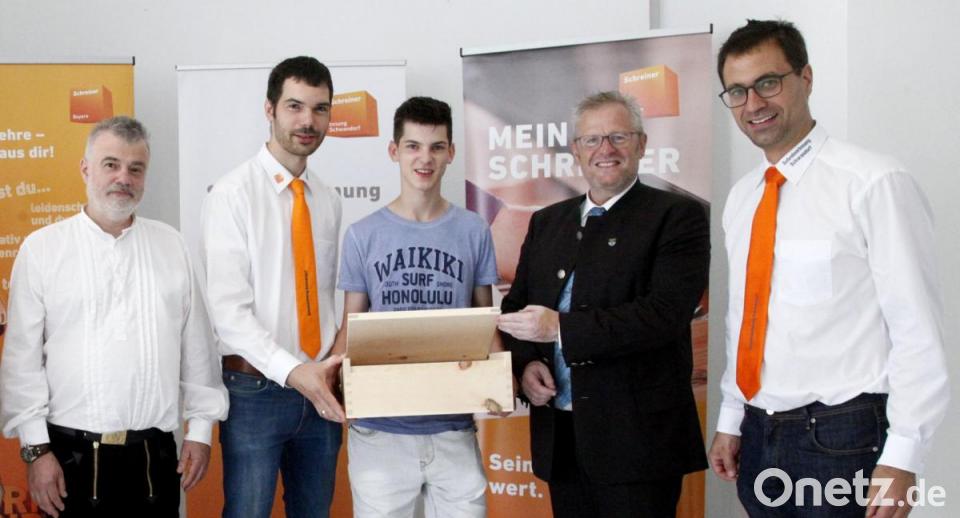 100 Stunden haben die Schreinerlehrlinge im Schnitt für ihr Gesellenstück aufgewendet. Es entstanden Schreibtische, Sideboards, Vitrinen, Anrichten, Nachtkästchen, Fernsehschränke und Couchtische. In dieser Woche sind die Unikate im Oberpfälzer Künstlerhaus ausgestellt. Dort findet am Freitag um 18.30 Uhr auch die Freisprechung der Auszubildenden statt. Zu ihnen gehört auch Florian Götz aus Wernberg-Köblitz, der den Vorstandsmitgliedern der Innung und Oberbürgermeister Andreas Feller bei der Ausstellungseröffnung am Sonntag den Brotkasten zeigte, den er bei der praktischen Prüfung gefertigt hat.