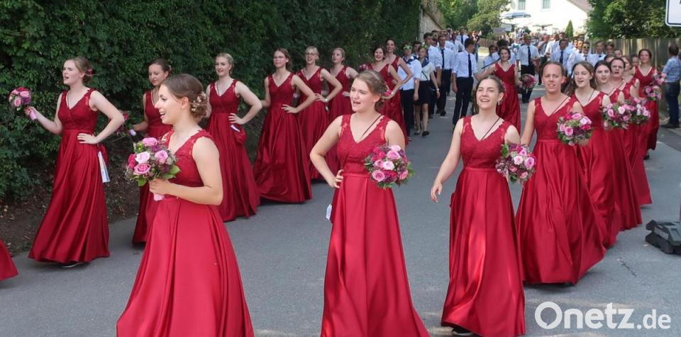 Zu den bewegenden Momenten gehörte die Weihe der neuen Fahne beim Gottesdienst am Sonntag vor dem Feuerwehrgerätehaus. Die Standarte des Burschenvereins hat nämlich eine besondere Geschichte. Aus Angst, die Nazis könnten die Vereinsfahne beschlagnahmen, zerstückelten sie die Mitglieder und nähten die Einzelteile in die kirchliche "Josefsfahne" ein. Der Festausschuss entschloss sich, die Symbole des Burschenvereins, die auf Brauchtum, Glaube und Sitte hinweisen, wieder zurückzuholen und in eine neue Fahne einarbeiten zu lassen. Zu den Höhepunkten des Jubiläums gehörte am Sonntagnachmittag der Festzug durch die Ortschaft mit über 100 Gruppen und acht Musikkapellen. Nach der Rückkehr ins Zelt verteilten Vorsitzender Georg Mayer und Festleiter Josef Rester Ehrenpreise an die stärksten und am weitest angereisten Gruppen. Die längste Anreise hatte der Patenverein der "Neukirchener Blasmusik" aus der Ortschaft "Neukirchen an der Enknach" in Oberösterreich. Die lokalen Musiker mit Gerald Bink an der Spitze waren ebenfalls in das Programm eingebunden und begleiteten nicht nur den Kommersabend, sondern auch den Kirchen- und den Festzug musikalisch.