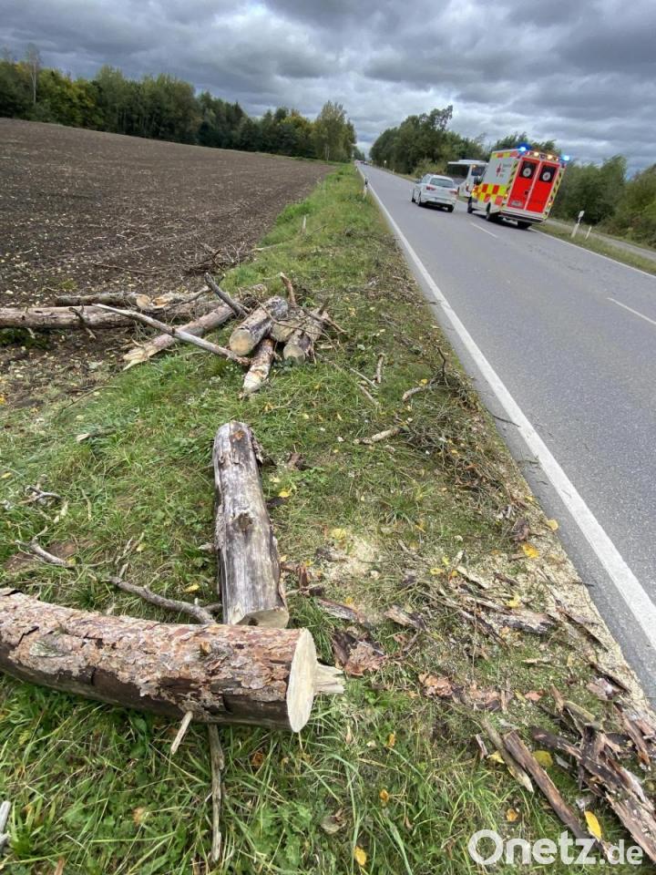 Am Donnerstagvormittag gegen 8.45 Uhr war bei Schwandorf auf der Staatsstraße 2397 von Klardorf in Fahrtrichtung Schwandorf ein Shuttle-Bus für Arbeitnehmer eines im Landkreis ansässigen Unternehmens unterwegs, als unmittelbar vor dem Fahrzeug wegen starker Windböen drei Bäume auf die Fahrbahn fielen.