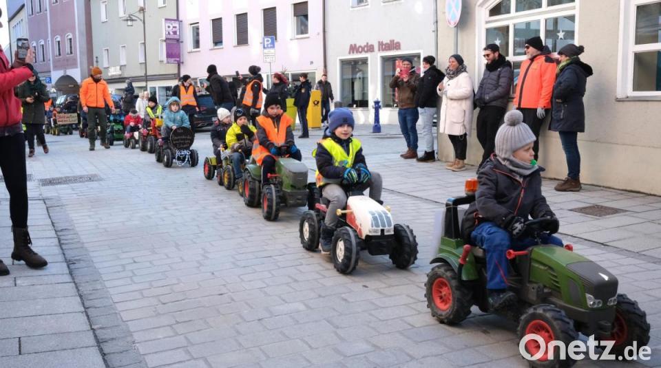 Eine Gruppe junger Landwirte mit Johannes Rester an der Spitze hatte zu einer Tretbulldog-Demo in Schwandorf als Protest gegen die Sparpläne der Bundesregierung aufgerufen.