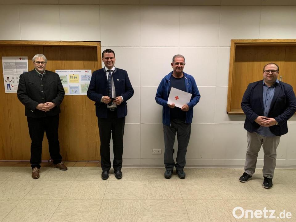 Mehr als 50 Jahre aktiv beim Roten Kreuz: Für diese Lebensleistung ehrt der BRK-Kreisverband Dieter Güll, den Bereitschaftsleiter der BRK-Bergwacht im Landkreis Schwandorf. BRK-Vorstandsvorsitzender und Landrat Thomas Ebeling überreichte Güll die DRK-Ehrennadel im Namen der BRK-Präsidentin Gerda Hasselfeldt.
