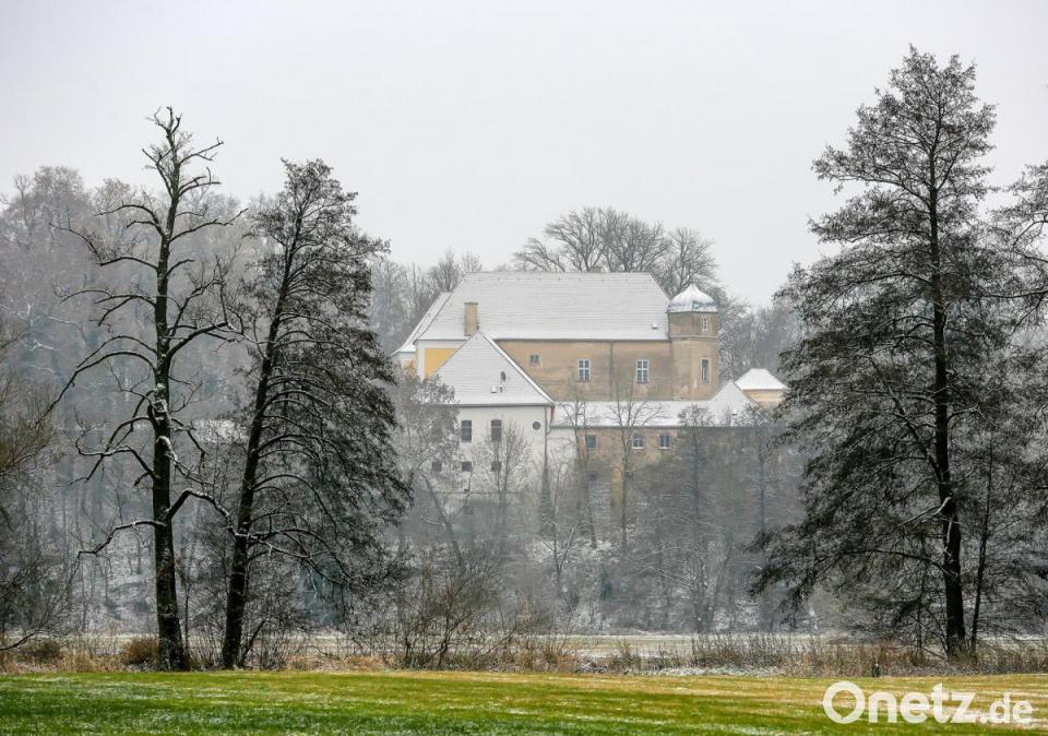 Für eine dichte Schneedecke hat es auf den Wiesen bei Krondorf noch nicht gereicht. Aber ein Anfang ist gemacht. Der Blick schweift zum Fronberger Schloss, das hier über der Naab thront: Erstmalig urkundlich erwähnt ist die Anlage bereits im Jahr 1305, die Fronberger Eisenhütte ist seit 1326 nachgewiesen.