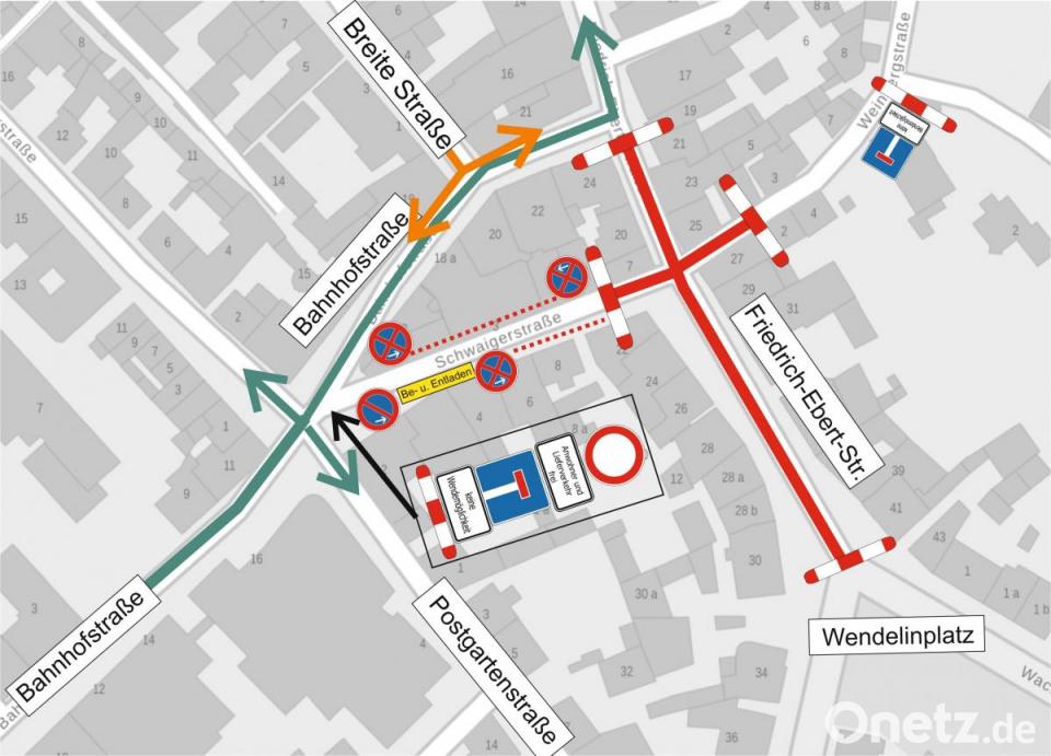 Der Fahrplan für die nächsten Wochen sieht folgendermaßen aus: Am Montag starten um 7 Uhr die Arbeiten vom Bereich der Bahnhofstraße bis einschließlich des Wendelinplatzes. Die Zufahrt in die Friedrich-Ebert-Straße vom Wendelinplatz, der Schwaigerstraße und der Weinbergstraße aus sind dann nicht mehr möglich. Wer von der Adenauerbrücke kommt, wird über das Tonwarenfabrikgelände umgeleitet. In der Schwaigerstraße herrscht in den kommenden Wochen ein Parkverbot, das Be- und Entladen ist weiterhin erlaubt. Die Weinbergstraße ist über die Böhmische Torgasse sowie die Schießstättengasse erreichbar. Zu Beginn der Arbeiten wird der Wendelinplatz so umgebaut, dass er während der überwiegenden Bauzeit zweispurig in Richtung Wackersdorf befahrbar ist. Ab Mitte Juni wird für acht Wochen eine Ampel den Verkehr regeln. Wer mit dem Auto zum Marktplatz will, muss über die Beer-Kreuzung oder - was vergangenes Jahr nicht möglich war- die Bahnhofstraße fahren.