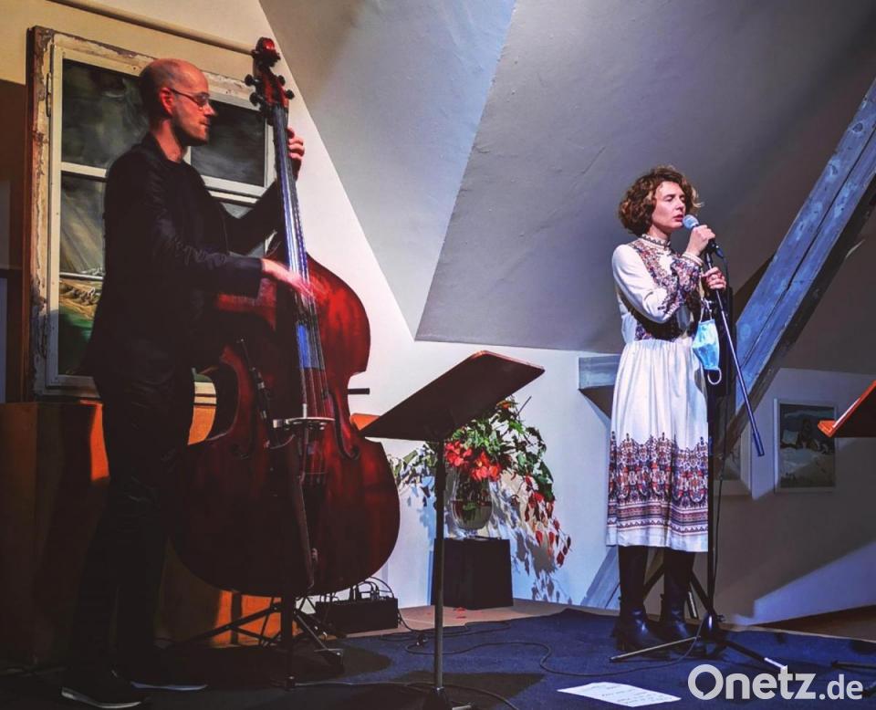 Ihr Faible für Frankreich und das Französische lebt die Künstlerin sonst eher in der Musik aus. So interpretierte sie zusammen mit dem Kontrabassisten Faller am Abend in der Kebbelvilla unter anderem zwei Stücke des Chansonniers Serge Gainsbourg, einem der einflussreichsten und kreativsten Singer-Songwriter unseres Nachbarlandes. Wobei sich bei "Couleur Café" aus dem Jahr 1964 ein interessantes Gespräch zwischen Faller und Sturm über Klischees und Rassismus entwickelte. Denn auch ein gut gemeintes Lob wie in diesem Stück über die Schönheit dunkelhäutiger Menschen, kann sich bei näherer Betrachtung als Vorurteil herausstellen.
