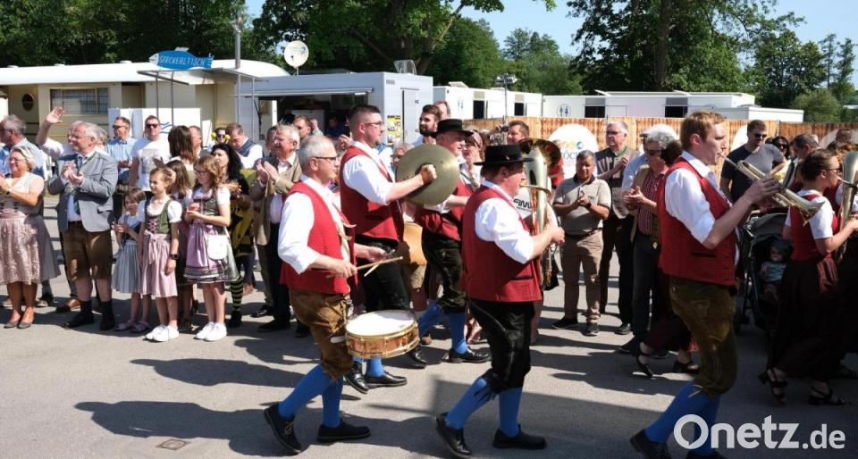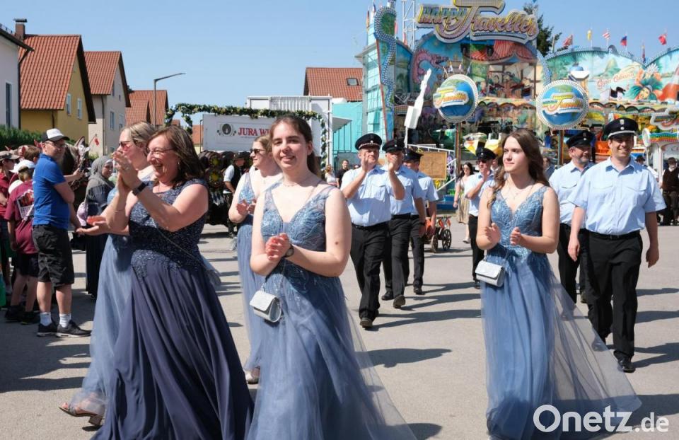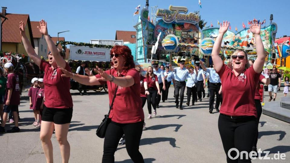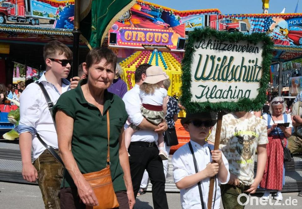 Aufstellung war in der Augustinstraße. Von dort bewegte sich der Zug über den Marktplatz in Richtung Volksfestplatz, angeführt von der Bubacher Blaskapelle und dem Pferdegespann mit den Bierfässern der Brauerei. Vor dem Zelt bildeten die Musiker und Ehrengäste ein Spalier für die nachfolgenden Vereine.