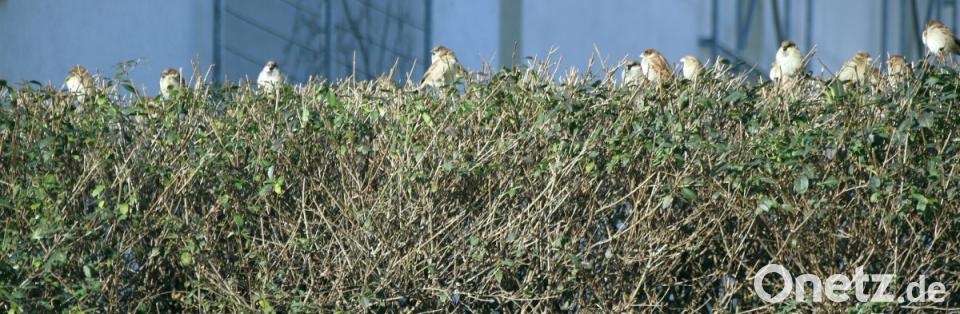 Von der Straße aus ist die gefiederte Schar nur schlecht auszumachen, man hört sie nur. Gut zu sehen sind die Vögel im Garten, den die Hecke zur Straße hin abschließt. Der Garten gehört zum Grundstück von Sebastian Lehmer, der einen sogenannten Baum-Service betreibt. Seine Großmutter Therese, die im Erdgeschoss des zugehörigen Wohnhauses lebt, liebt das unbändige Gezwitscher. „Die Spatzen sind hauptsächlich im Winter da, im Frühjahr fliegen sie wieder aus“, weiß sie. Die Anhänglichkeit der kleinen Tiere hat natürlich auch damit zu tun, dass sie von Therese Lehmer zuverlässig gefüttert werden. „Und natürlich wegen der Ligusterhecke“, ergänzt Enkel Sebastian Lehmer, „solche Hecken gibt es in der Stadt nicht viele“.