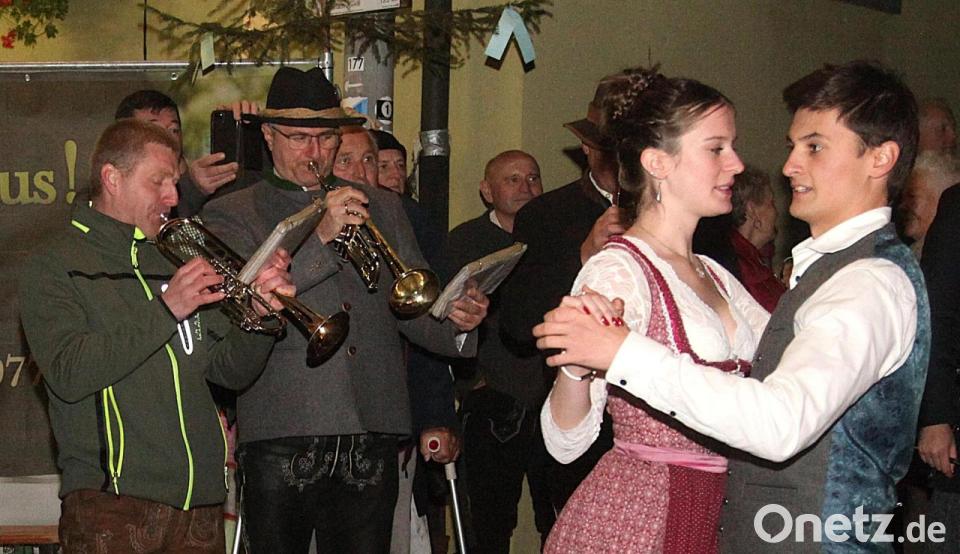 Sie fanden beim Tanz um den Baum gar nicht alle Platz auf dem Podium und mussten zum Teil auf die Straße ausweichen. Erster Kirwabursch Lukas Helm führte die Paare zusammen mit Johanna Tauscher bei Walzer, Polka und Schottisch an. Die Kirwamusikanten gaben den Takt vor.