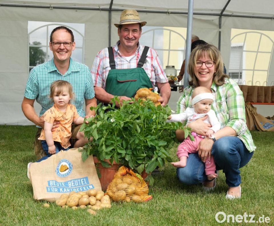Die Familie Kiener aus Schwandorf-Richt baut seit 150 Jahren Kartoffeln an. Inzwischen in der fünften Generation. Senior Michael Kiener hat den Betrieb vor einem Jahr an Sohn Hans und Schwiegertochter Anita übergeben. Sie betreiben klassischen Ackerbau mit einem Kartoffelanteil von sieben Hektar. "Der leichte und sandige Boden im Naabtal eignet sich gut für den Kartoffelanbau", versicherte Hans Kiener den Teilnehmern an der landkreisweiten Saisoneröffnung, organisiert vom BBV. Bei längerer Trockenheit setzt er seine Beregnungsanlagen ein. Den größten Teil der Ernte vermarktet der Betrieb direkt am Hof in Richt.