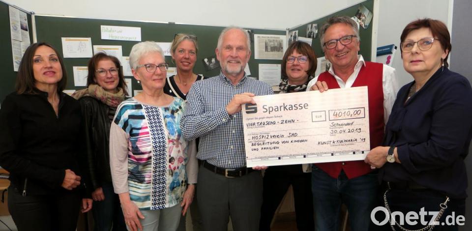 Die zwölfte Auflage der Charity-Veranstaltung von Kunst & Kulinaria, die am 23. März im Fronberger Sperl-Stadl stattfand, brachte einen Erlös von 4010 Euro. Das Geld geht diesmal an den "Hospizverein in Stadt und Landkreis Schwandorf". Die Veranstalter überreichten den Scheck am Dienstag an die beiden Vereinsvorsitzenden Dr. Wolfgang Laaths und Gisela Pöhler. Sie wollen das Geld für die Ausbildung von "Sterbebegleitern für Kinder" verwenden und mit diesem zusätzlichen Angebot betroffene Familien entlasten. Außerdem möchte der Vorstand in den Büroräumen in der Brauhausstraße einmal im Monat ein "Trauer-Cafe" einrichten.