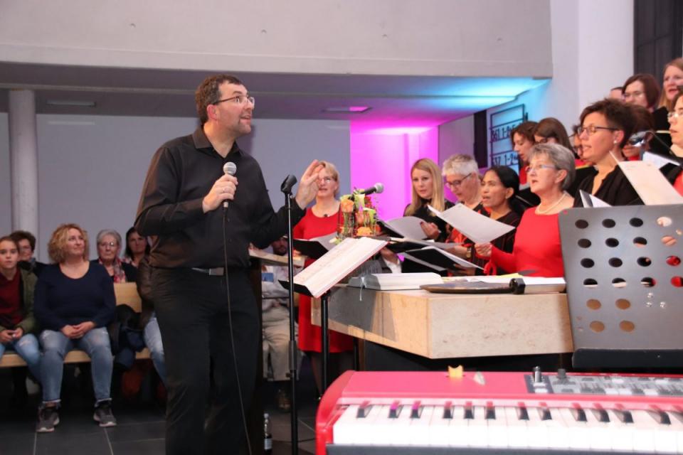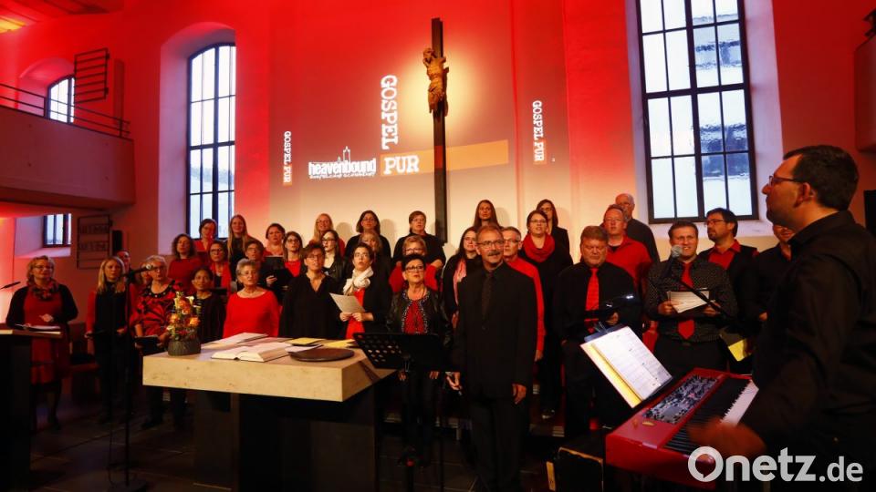 Vor fast 300 Besuchern präsentierte der große Chor 18 englischsprachige Lieder, die manchmal ergreifend, manchmal swingend das Lob Gottes zum Thema hatten. Einleitende Worte sprachen Matthias Hofmann und Jürgen Weich, als Solisten taten sich Heinz Ploss, Jasmina Jobst, Sonja Lehnfeld, Karl Bullemer, Susanne Huber, Roland Willecke, Willi Stöhr sowie der Chorleiter Thomas Huber hervor. Huber wies auch darauf hin, dass Heavenbound im nächsten Jahr sein „25-Jähriges“ feiern kann. Der Chor wurde 1994 gegründet und zählt jetzt fast 40 Mitglieder. Sein Repertoire umfasst knapp 300 Lieder.