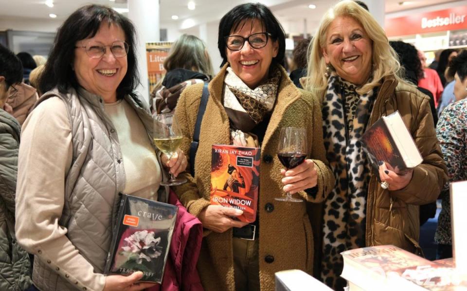 Nach der Vorstellung der neuen Romane, Krimis und Biographien hatten die Besucher Gelegenheit, bei einem Glas Wein in den Regalen und auf den Tischen zu stöbern und sich Lesestoff mit nach Hause zu nehmen. Das Haptische des Buches kann sich ganz offensichtlich auch in Zeiten von eBook und Podcast behaupten. „Ich möchte ein Buch in der Hand halten und vor- zurückblättern können“, gibt Susi Schönfelder zu verstehen. Sie hat ihre Liebe zu Italien neu entdeckt und greift zu Reiseliteratur. Ilona Knecht-Jesberger interessiert sich aktuell für die Entwicklung der Frauenrechte und sucht unter der Rubrik "Historisches". Gabi Dörfler schätzt das breite literarische Angebot der Buchhandlung Rupprecht, die nahezu das gesamte literarische Spektrum abdecke.