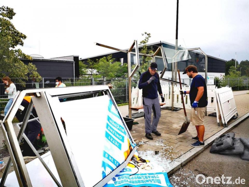 Zwischenzeitlich war die Besitzerfamilie des Werbeunternehmens, dem das Wartehäuschen gehört, beim Aufräumen. Die Glassplitter mussten beseitig, die tragenden Teile entfernt werden. Sie waren alle zerstört und verbogen. Den Schaden an dem kleinen Bauwerk schätzte sein Besitzer auf rund 15 000 Euro ein. Für ihn ein herber Schlag, da die Unterstellemöglichkeit nicht gegen solche Unglücke versichert ist.