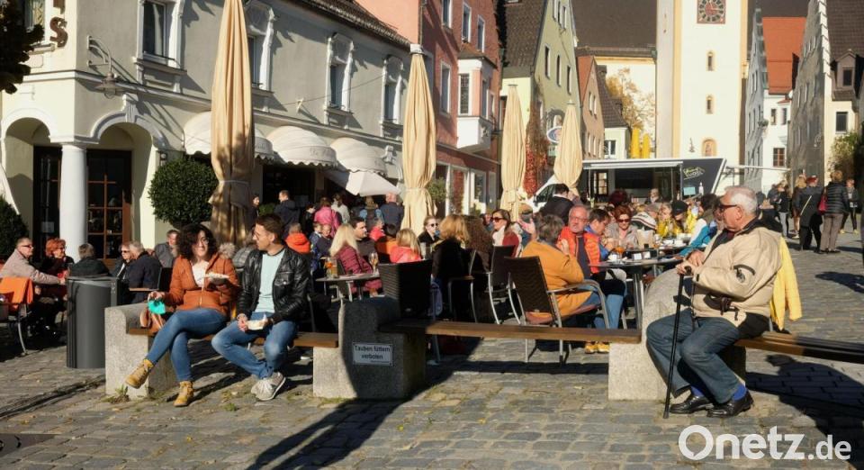 Bei Cappuccino, Espresso, einem Glas Sekt oder einer Tasse Kaffee genossen die Menschen die warme Herbstsonne. Die Straßencafés am Marktplatz waren am Sonntag voll besetzt. Nach einer kleinen Stärkung bot sich ein Einkaufsbummel an. Am "Mantelsonntag" postierten sich die Fieranten mit ihren Ständen am unteren Marktplatz und verkauften Dinge des täglichen Bedarfs. Nachgefragt waren vor allem Grabgestecke. Beim "Allerheiligenmarkt" waren traditionell auch die Geschäfte geöffnet.
