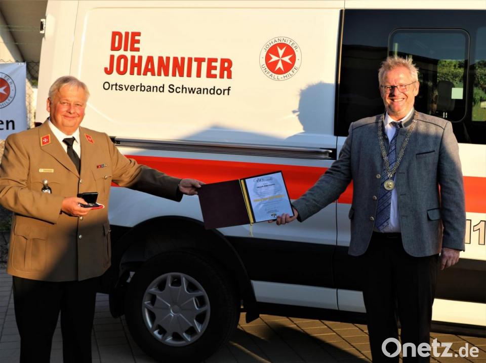 Hohe Ehre für Ulrich Pidrmann: Oberbürgermeister Andreas Feller verlieh dem Leiter der ehrenamtlichen Dienste beim Johanniter-Ortsverband Schwandorf die Konrad-Max-Kunz-Medaille.