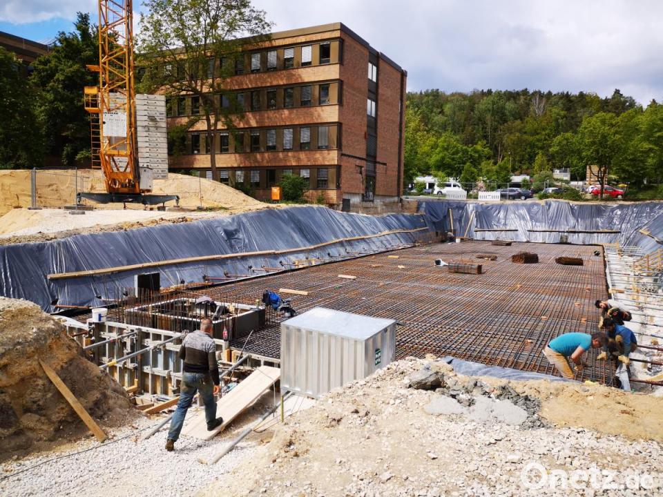 Beim Erweiterungsanbau für die Verwaltungsräume wird aktuell am massiven Tiefgeschoss gearbeitet, erfuhr der Bauausschuss des Landkreises. Die Aufstellung des Holzbaus für die oberen drei Stockwerke ist im Spätsommer geplant. Nach Einbau der Fenster und der Dachabdichtung folgen der technische Ausbau und der Innenausbau. Der Holzbau erhält in den beiden oberen Stockwerken eine Holz-Glasfassade. Ein Bezug der neuen Räume für die Zulassung und das Jugendamt ist im Sommer 2020 beabsichtigt. Die Baukosten samt Nebenkosten für den dreigeschossigen Verwaltungsanbau zuzüglich Kellergeschoss werden einschließlich der im letzten Jahr beschlossenen zusätzlichen Kosten für Fassade, Dämmung und Photovoltaik auf fünf Millionen Euro geschätzt. Im Mai werden am Landratsamt auch zwei neue Aufzüge im Bestandsgebäude eingebaut. Parallel dazu laufen den Brandschutz verbessernde Maßnahmen. Auch das Foyer wird neu gestaltet.