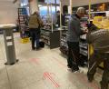 Im Inneren des Rewe-Marktes geben vor allem im Kassenbereich Pfeile auf dem Boden, Aufkleber mit Abstandsregeln und Infoblätter an den Regalen vor, wie man sich beim Einkauf verhalten sollte. "Natürlich kann man nicht verhindern, dass mal einer zu nahe am anderen vorbeigeht", bedauert Harbig; aber von einigen Teenagern abgesehen würden die anderen Kunden in dieser Hinsicht durchaus Vorsicht walten lassen. Ein entsprechender Hinweis hängt auch im Laden aus: "Liebe Kunden, bitte bewegt euch nur in eine Richtung," steht darauf zu lesen. Im benachbarten Rewe-Getränkemarkt ist man noch einen Schritt weiter gegangen und hat eine Einbahnregelung eingeführt, so dass sich Kunden nicht mehr entgegenkommen können.