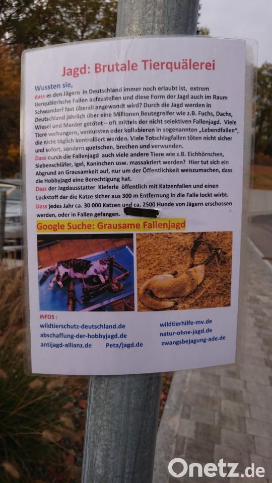 In Nabburg sind ebenfalls laminierte Flugblätter an Lichtmasten aufgetaucht mit der Überschrift "Jagd: Brutale Tierquälerei". Tierschützer brandmarken, dass Fuchs, Marder und Iltis nach wie vor mit Fallen bejagt werden. "Fallenjagd gibt es, seit es Jagd gibt", so Vornlocher. Es sei ein probates Mittel, um Fuchs oder Marder zu stellen. Die Fallen dürften nur in einer entsprechenden Zeit scharf gestellt werden. Lebendfallen müssten täglich kontrolliert werden. "Dazu gibt es ganz genaue Regelungen", stellt der Vereinsvorsitzende klar.