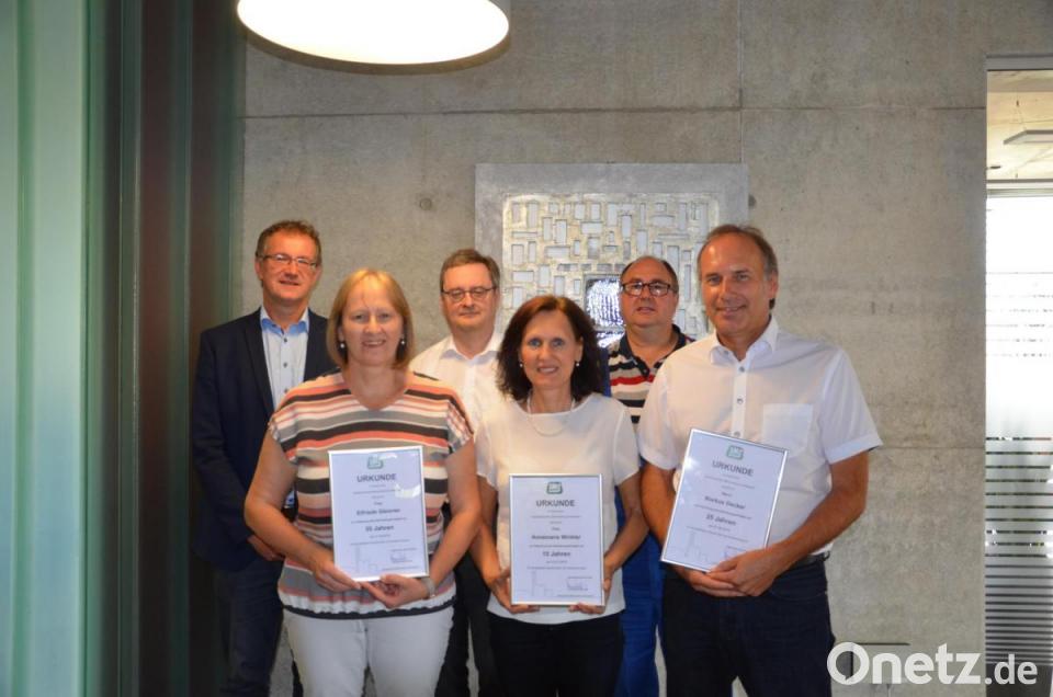 Für folgende Dienstjubiläen wurden ausgezeichnet: Annemarie Winkler, Mitarbeiterin im Schreibdienst und Sekretariat, für 15 Jahre; Elfriede Gleixner, Sekretärin Technik, für 35 Jahre: Markus Decker, Abteilungsleiter Finanzverwaltung, für 25 Jahre.