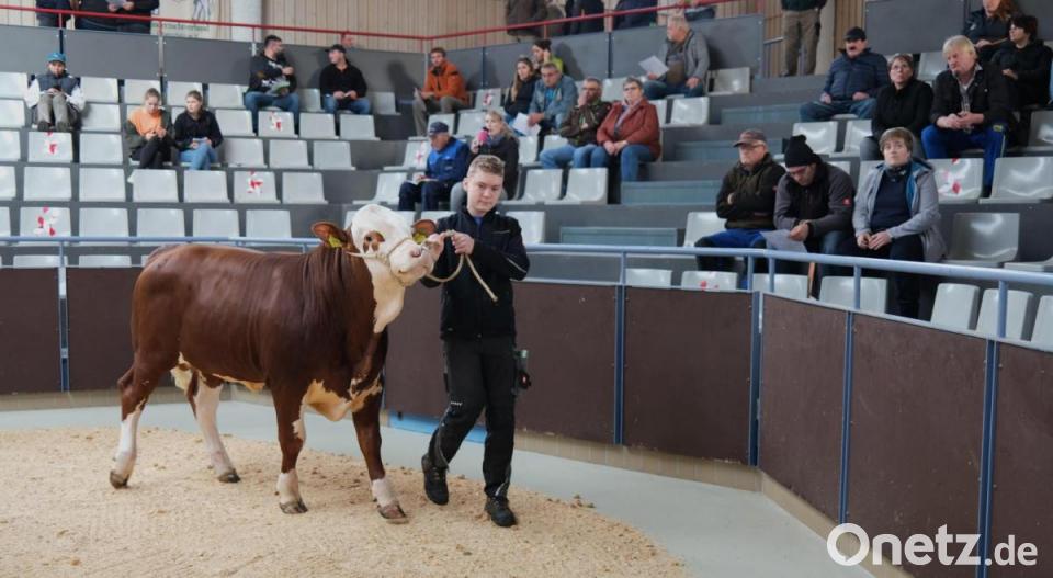 Der zwölf Monate alte namenlose Stier stammt aus dem Stall des Züchters Markus Götz aus Deining (Landkreis Neumarkt), der seit 40 Jahren Auktionen in Schwandorf beschickt. Der Bulle bekam die besten genetischen Werte vererbt, wie Voruntersuchungen ergeben haben. Über diese Daten hatte sich Thomas Pfaller genau informiert, bevor er am Mittwoch am Ring des Schwandorfer Tierzuchtzentrums Platz nahm. Der Agrar-Ingenieur sollte den Bullen für die bäuerliche Selbsthilfeorganisation „Bayern-Genetik“ in Landshut ersteigern.