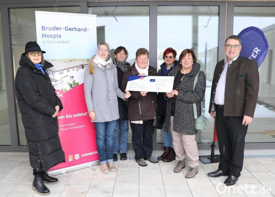 Zur Spendenübergabe im Bruder-Gerhard-Hospiz trafen sich Vertreterinnen des Katholischen Frauenbundes Fuhrn mit Martin Steinkirchner, Regionalvorstand der Johanniter in Ostbayern, Sabine Sudler, Sachgebietsleitung Hospize, Katharina Salbeck, Leitung des Hospizes in Schwandorf und Gisela Pöhler, Vorsitzende des Hospizvereins Schwandorf. Steinkirchner bedankte sich im Namen aller für die Spende.