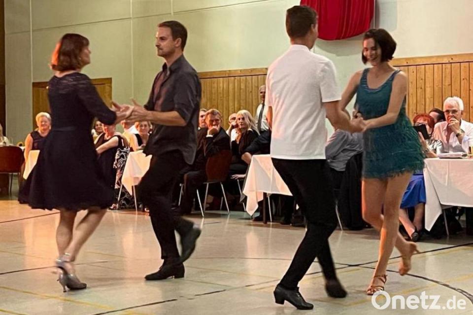 Den Höhepunkt des Abends gestalteten die Showtanzpaare Gabi Hüttl/Thomas Weber und Ute Hübner/Nico Wellnhofer mit ihren Einlagen. Auf hohem technischen Niveau mit viel Dynamik und Eleganz schwebten sie beim langsamen und Wiener Walzer, Rumba, Salsa, Jive und Disco Fox mit ansteckender Begeisterung übers Parkett.