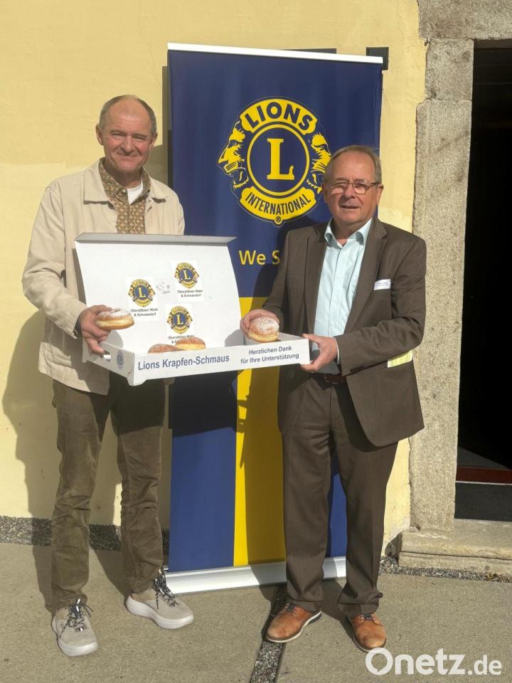Die frisch gebackenen mit Fruchtmark gefüllten Krapfen werden in Nabburg an- und von Lions-Mitgliedern frei Haus zu den Bestelladressen im ganzen Landkreis geliefert. Die Club-Präsidenten Hans Klug (LC Oberpfälzer Wald) und Alexander Heinz (LC Schwandorf) haben die Krapfen bereits probiert und hoffen, dass das Rekordergebnis des letzten Jahres – 12 720 Krapfen - noch getoppt werden kann, um mit dem Erlös Projekte in der Region zu unterstützen.