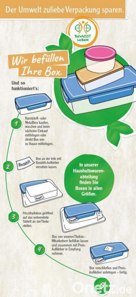 Auch Ernst Maler, der Obermeister der Metzgerinnung Schwandorf, führt den logistischen Aufwand als gewichtigen Nachteil an: "Wie soll die Lagerhaltung vonstatten gehen?" Außerdem hat er "hygienetechnische" Bedenken: "Man weiß ja nicht, wo die Leute ihre Boxen rumziehen; vielleicht nehme sie sie als Hunde- oder Katzennapf her." In der Lebensmittelbranche sei es einfach schwierig auf Verpackungen zu verzichten. Auch von "Ersatzverpackungen aus essbaren Sachen oder Holz" hält Maler nicht viel.