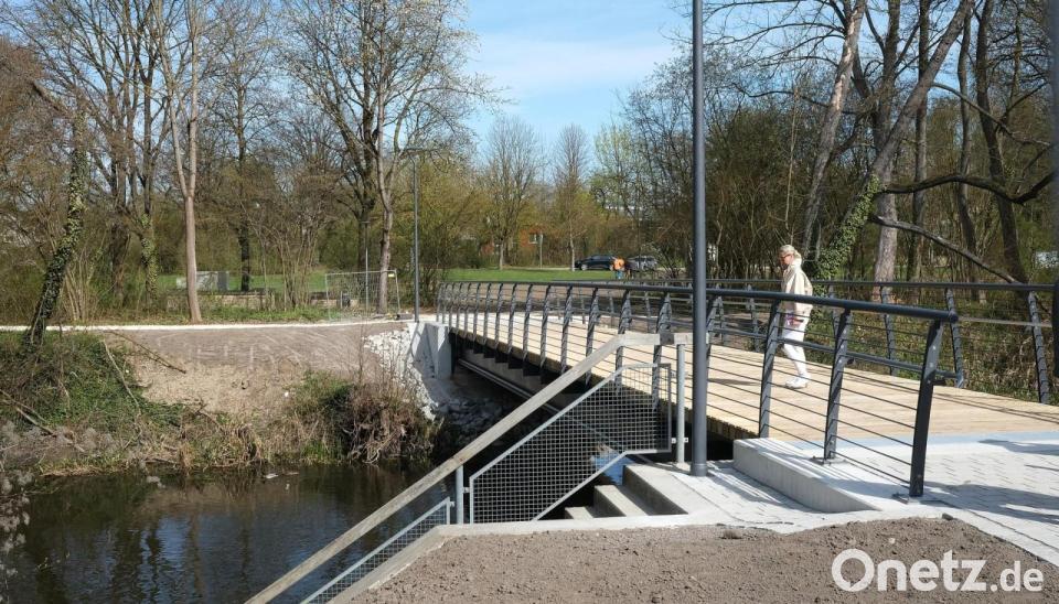 Die Brückenbeleuchtung sorge auch abends für Sicherheit. Im Laufe des Jahres soll das Umfeld des Steges noch mit einer Bepflanzung aufgewertet werden. Für die barrierefreie Verbindung von der Innenstadt zum Stadtpark wurden 25 Tonnen Stahl verbaut.