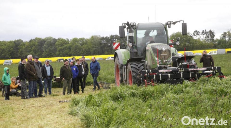 Was moderne Technik zur Schonung der Tiere leisten kann, zeigte Gerald Priller von der BB-Umwelttechnik GmbH beim Einsatz eines Doppelmesser-Mähwerks, das bei einer Schnitthöhe von zehn Zentimetern über die Bodengelege hinwegmäht und den Tieren außerdem genügend Zeit zur Flucht lässt. Ferner kam ein Mulchgerät zum Einsatz, das Insekten und Kleinstlebewesen nachhaltig schützt. Der Aktionstag "Lebensraum Wiese" fand in dieser Form erstmals statt. Behördenleiter Georg Mayer griff der Thema auf, um der Öffentlichkeit zu zeigen, "wie wichtig den Landwirten der Schutz der Tiere ist".