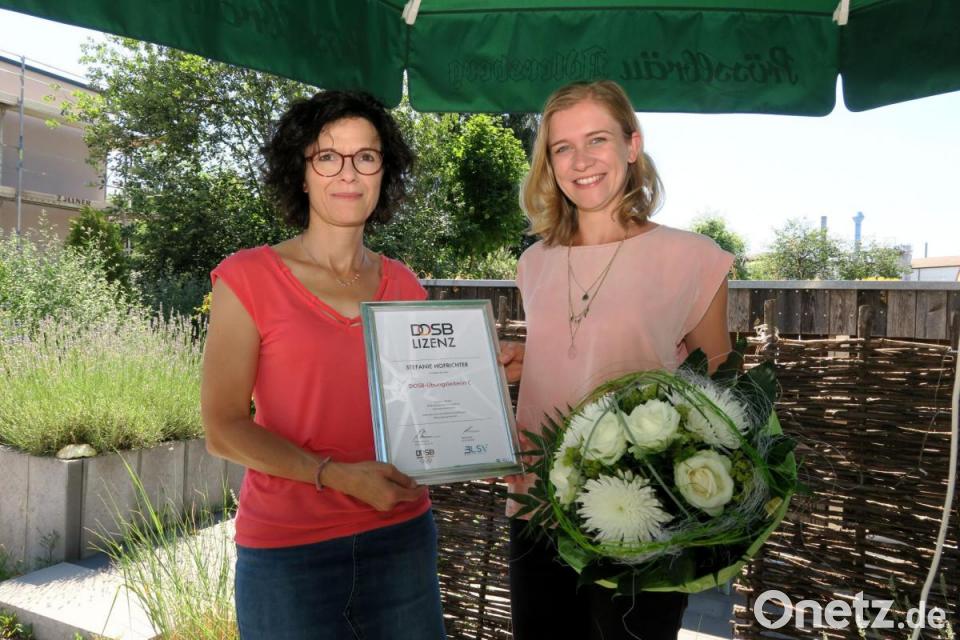 Beim ASV Fronberg treiben 76 Mädchen und Buben Gymnastik-Sport. Spartenleiterin Ute Kotzbauer gratulierte ihrer neuen Trainerin mit einem Blumenstrauß und überreichte ihr die Urkunde "Übungsleiter C". Stefanie Hofrichter ist mittlerweile die siebte Übungsleiterin in der ASV-Gymnastikabteilung.