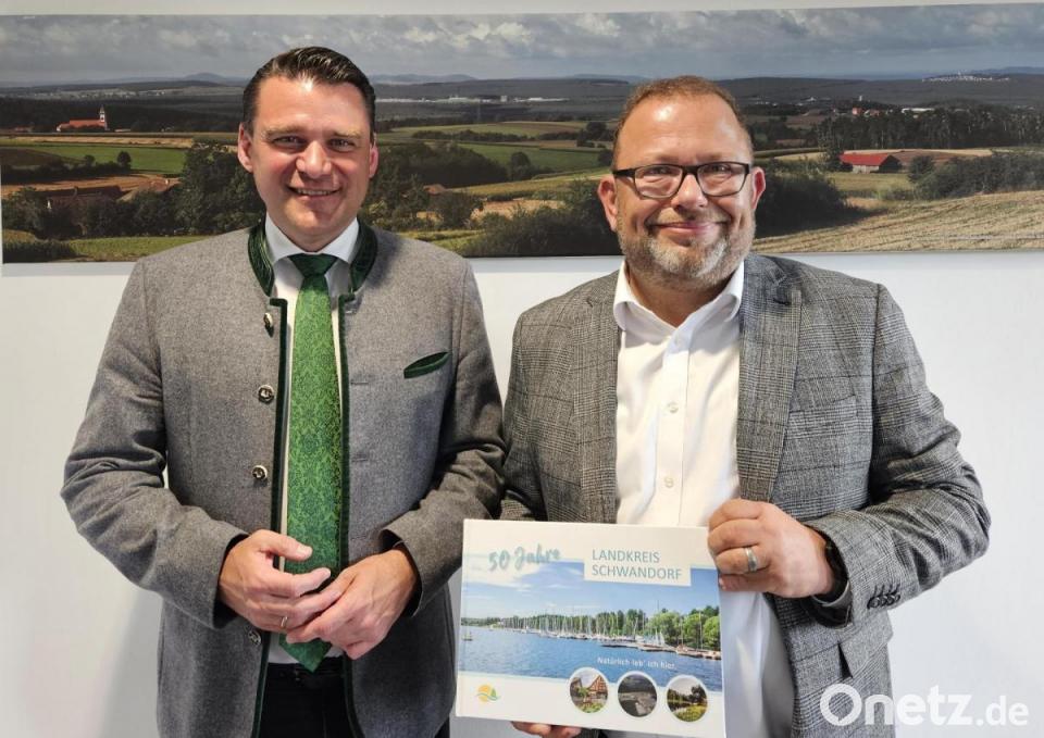 Landrat Thomas Ebeling, der vormals selbst als Richter tätig war, bescheinigte ihm dafür ein enormes Fachwissen sowie die Kompetenz, Probleme frühzeitig zu erkennen und sie zu einer sachgerechten Lösung zu führen. "An neuen und spannenden Herausforderungen wird es nicht fehlen", gab Ebeling, der auch einige aktuelle Themen im Landkreis skizzierte, dem neuen Abteilungsdirektor mit auf den Weg. Der Landrat wünschte Kiesl viel Erfolg bei seinen Aufgaben und eine glückliche Hand bei allen Entscheidungen. Als Dank für den Vorstellungsbesuch überreichte er das aktuelle Landkreisbuch, das vor zwei Jahren anlässlich des 50-jährigen Bestehen des Landkreises Schwandorf herausgegeben worden war.