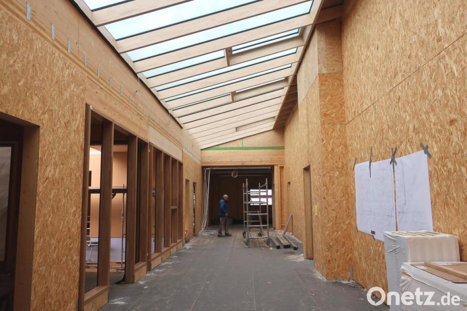 Im neuen Kinderhaus, das der Kreisverband der Arbeiterwohlfahrt als „inklusive Einrichtung“ betreiben wird, finden auf 700 Quadratmetern Nutzfläche je zwei Kindergarten- und Krippengruppen Platz. Den Flur, den Speisesaal und den großzügigen Außenbereich können sie gemeinsam nutzen, ansonsten sind die Räumlichkeiten aufgeteilt.