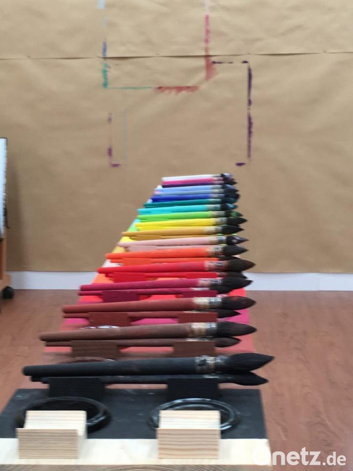 Alles, was entsteht, ist nicht für die Öffentlichkeit gedacht, auch nicht für die familiäre oder freundschaftliche. Schon der mit Packpapier ausgekleidete Malraum, auf dessen Wände die weißen DIN A 3- Blätter mit Reißzwecken gepinnt werden, ist vor fremden Blicken geschützt. Die Werke bleiben im Malort. "Wir sind das Gegenteil von Rampenlicht", erklärt Gabi Diermeier. Die bemalten Blätter versieht die Fronbergerin mit Namen und Datum, um sie griffbereit zu haben, wenn jemand weiterarbeiten oder die Arbeit großflächiger gestalten will. Grenzen oder Scheren im Kopf gibt es nicht,