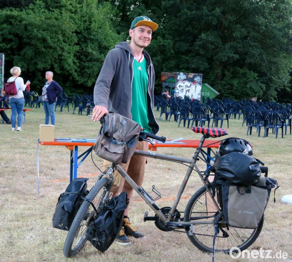 43 600 Kilometer durch 41 Länder in 761 Tagen – dieses Abenteuer auf zwei Rädern zeigt der 29-jährige aus Hessen in seinem Film „Besser Welt als nie“, der am Mittwoch im Open-Air-Kino im Schwandorfer Stadtpark lief. Und weil er in den zweistündigen Film nicht alle Erlebnisse hineinpacken konnte, hat Dennis Kailing auch noch ein Buch geschrieben. „Ich bin einfach drauf los gefahren“, erzählt der gelernte Bauingenieur den Kinobesuchern. Im Sommer 2015, im Schnitt 90 Kilometer am Tag. Am Ende jeder Etappe suchte er den Kontakt zu den Einheimischen und nahm gerne die Einladung zum Übernachten an.